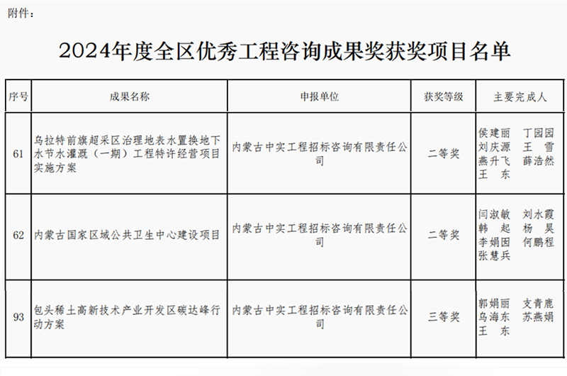 2025-04-167805 次2025年4月16日,内蒙古工程咨询协会公布了2024年度优秀咨询成果奖获奖单位名单,我司取得两个二等奖和一个三等奖,我司专业能力和服务质量再次获得行业的认可。此次获奖,不仅体…